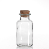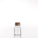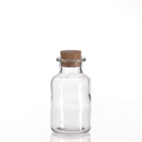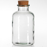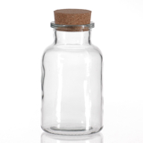 Dose Klarglas mit breiter Öfnung und Korkverschlus, dichtschliessend.