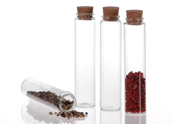 Probenglas in laborqualität,dichtschliessend.Zum Beispiel für Gewürzeoder MusterWird mit Korkverschluss oder Kunststoffkappe geliefert.