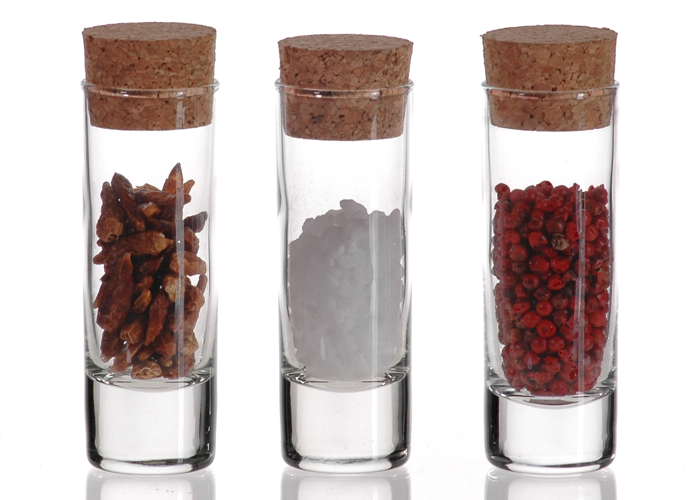 Gewürzglas klar.Designerausführung mit dickem Boden. DichtschliessenderKorkverschluss.