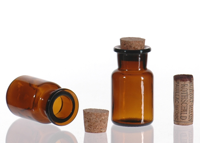 Glas in laborqualität,dichtschliessend.Zum Beispiel für Gewürzeoder LichtempfindlicheInhalte.Wird mit Korkverschluss geliefert.