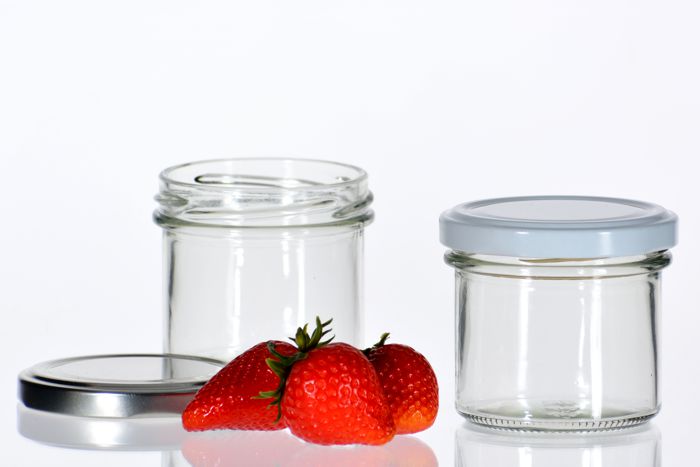 Schraubglas rund.Terrinenform ohne Schulter66er Twist-Off Deckel in weiss, silber oder schwarz.